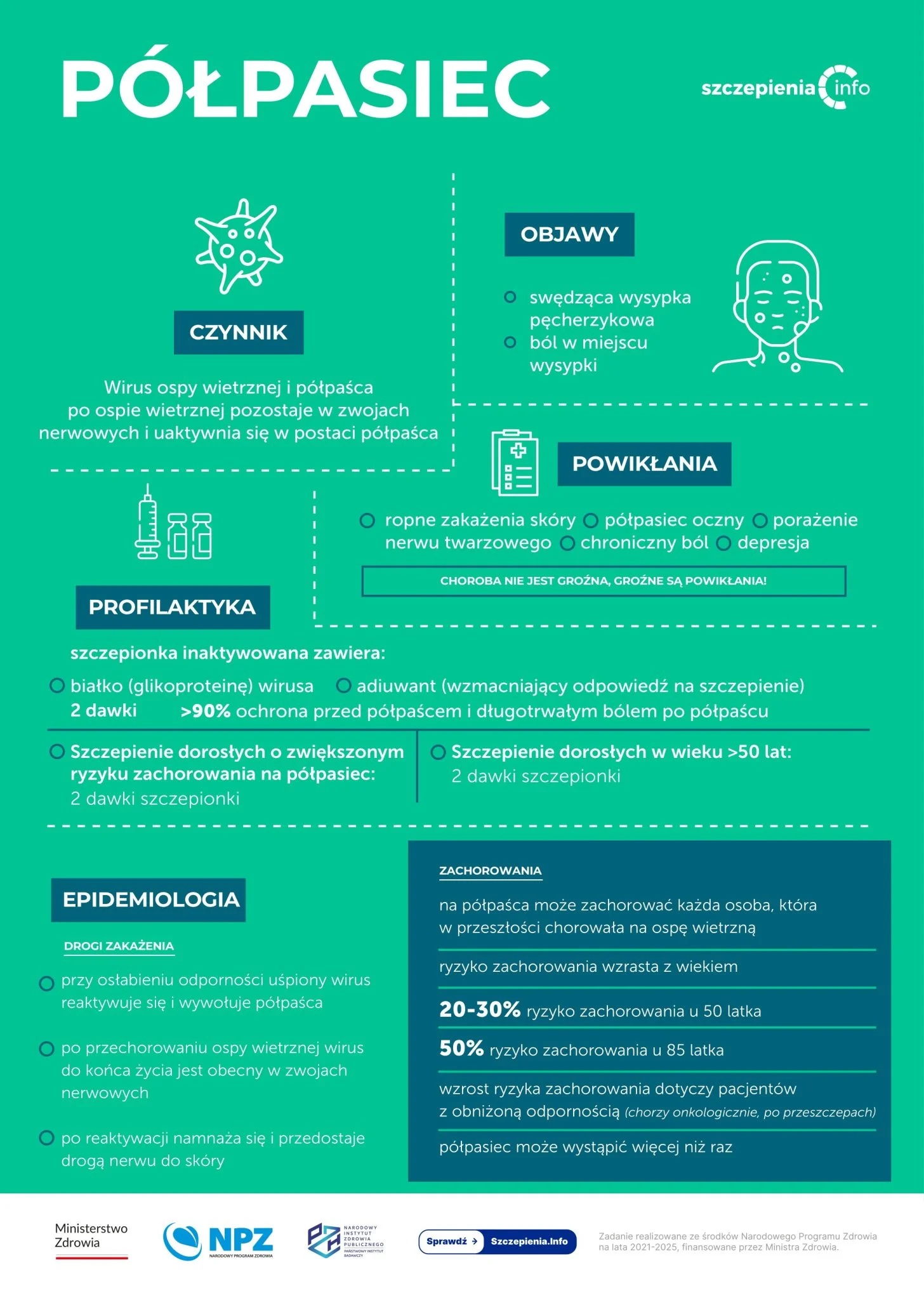 Półpasiec to choroba wywołana ponowną aktywacją wirusa ospy wietrznej i półpaśca (VZV), który po przechorowaniu ospy pozostaje w organizmie w stanie utajonym. Do reaktywacji dochodzi zwykle wiele lat później, szczególnie w sytuacji obniżonej odporności. Choroba najczęściej występuje u osób po 50. roku życia oraz u pacjentów z osłabionym układem immunologicznym. Ze względu na starzenie się społeczeństwa, dłuższą średnią długość życia i rosnącą liczbę osób w immunosupresji, można spodziewać się coraz większej liczby zachorowań.